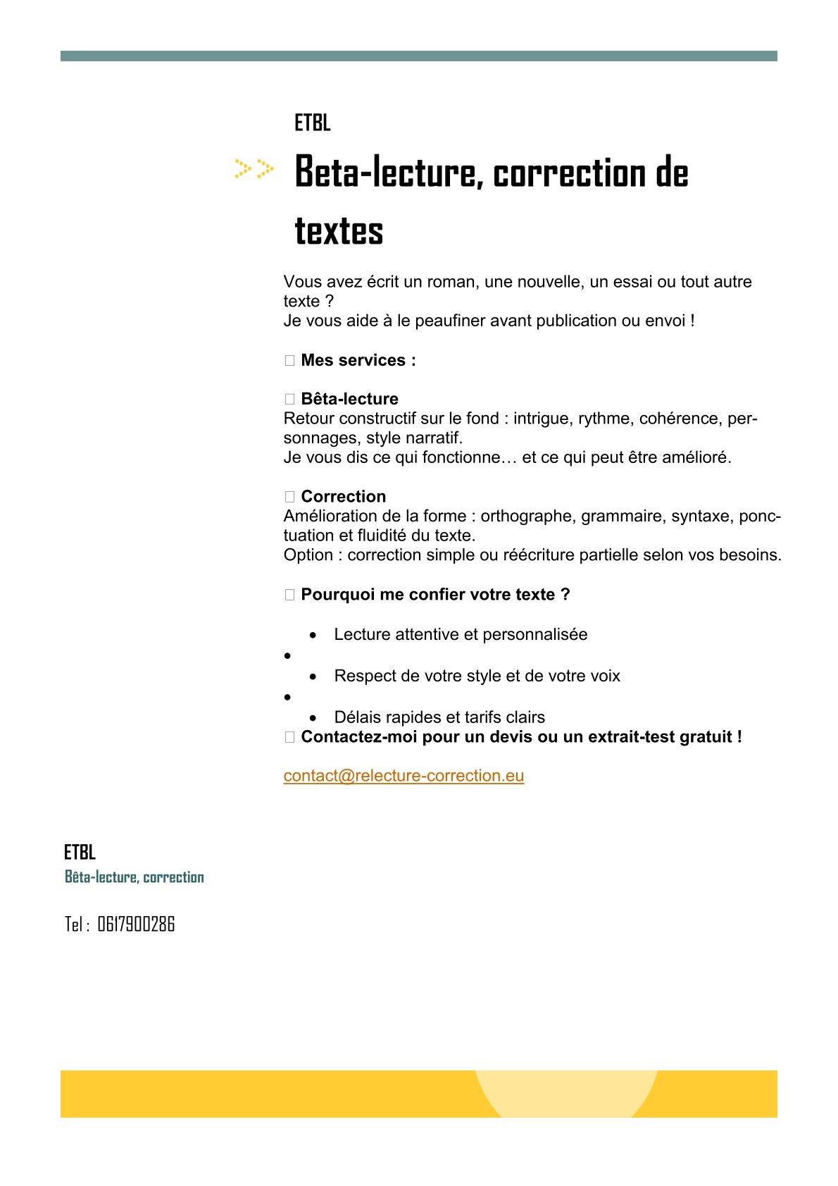 Je propose également des services de bêta-lecture pour des romans assez courts (voir page services)